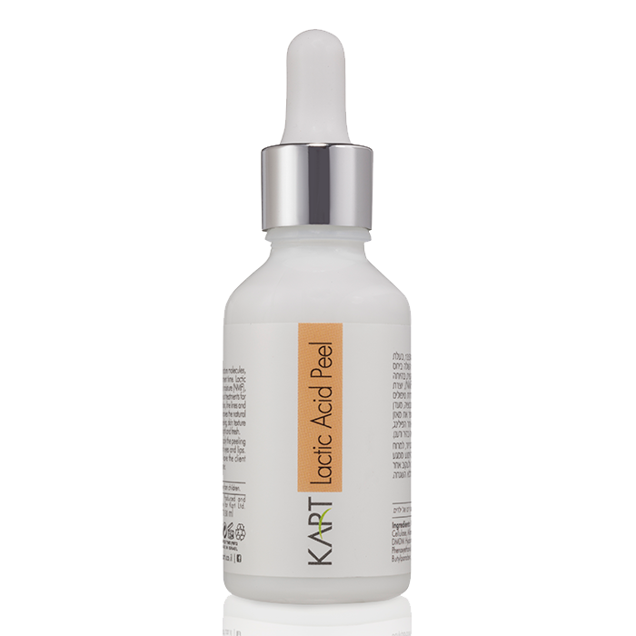 Lactic Peeling Kart -пилинг, с содержанием 13.5% молочной кислоты, наиболее эффективен для сухой, чувствительной кожи, кожи с куперозом и не вызывает раздражение. На молекулярном уровне, молочная кислота входит в состав натурального увлажняющего фактора (NMF) кожи. Она связывает и удерживает влагу, создавая вокруг себя своего рода водную оболочку, при этом правильно перераспределяется по направлению к глубоким, «живым» слоям кожи, что позволяет создать эффект сбалансированного увлажнения в эпидермисе. Также эффективна в комплексной терапии осветления и коррекции фотостарения, стимулирует пролиферацию фибробластов, обладает антиоксидантным действием. Кожа становится более гладкой, бархатистой, свежей и яркой, морщины разглаживаются.
